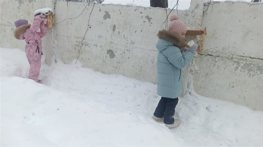 Воспитанники подкармливают птиц не только на территории дошкольного учреждения, но и возле своих домов.