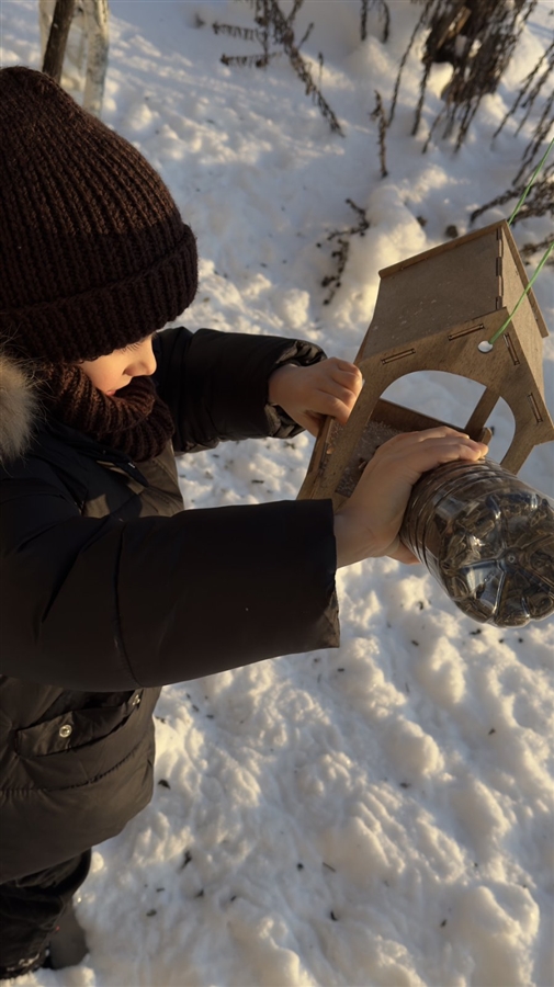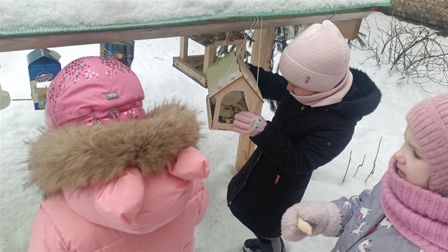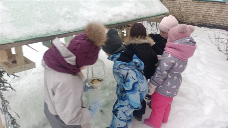 Птицы нуждаются в нашей заботе каждый зимний день! Об этом ежедневно напоминают своим воспитанникам педагоги. Обязательно один раз в день ребята пополняют кормушки кормом.