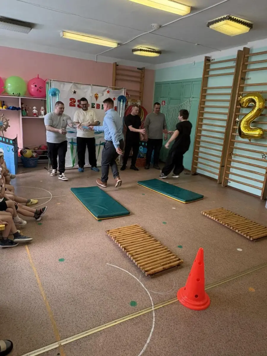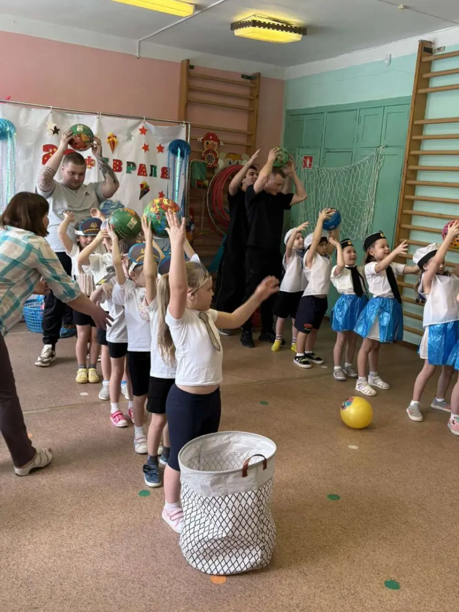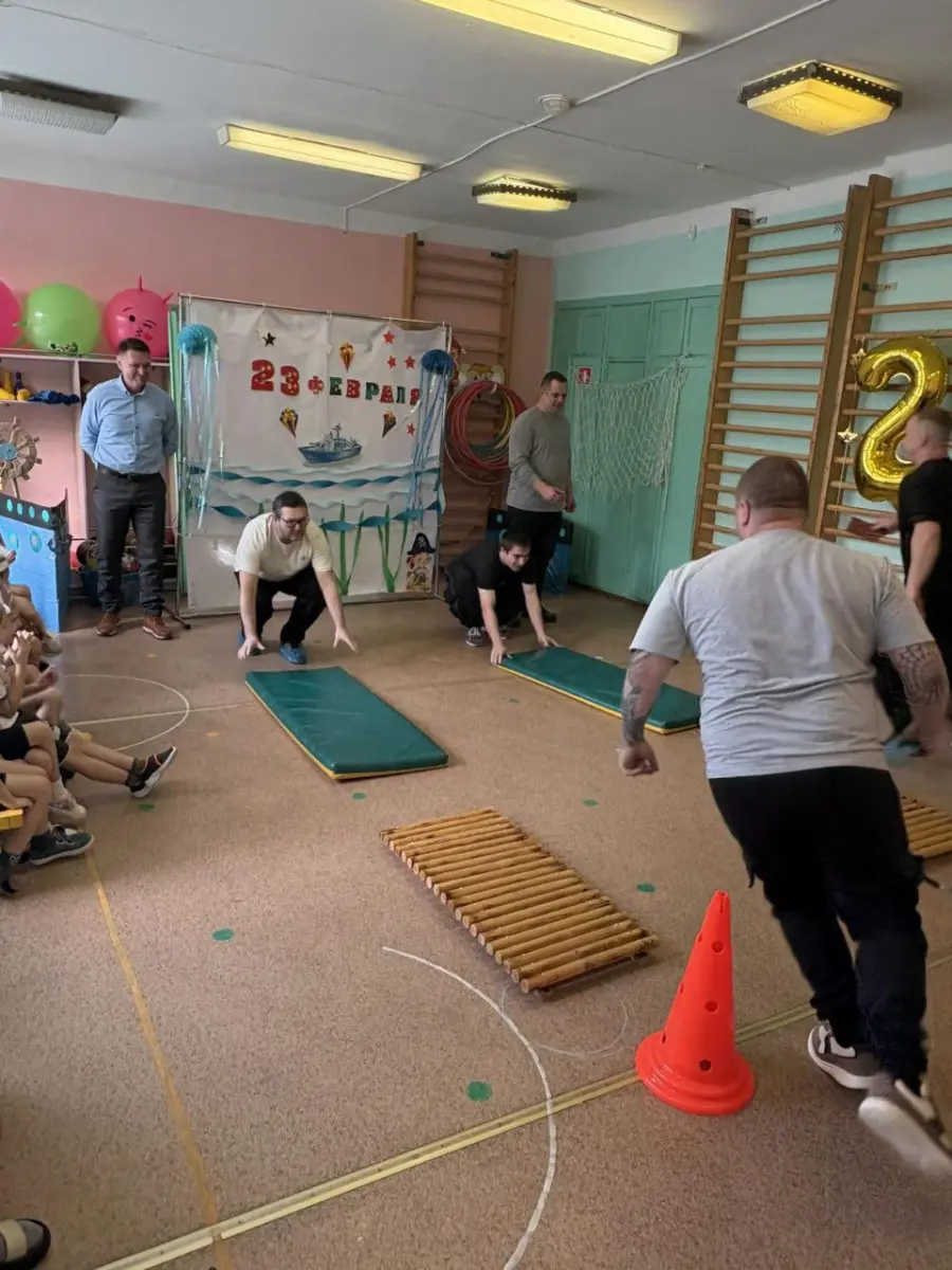 Вместе со своими детьми на стартовую линию вышли папы воспитанников, чтобы поддержать своих малышей и показать достойный пример силы духа и спортивной выдержки в эстафетах: «Минное поле», «Боевая тревога», «Снайперы», «Секретное письмо», «Силачи».