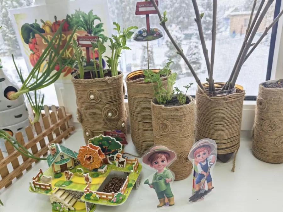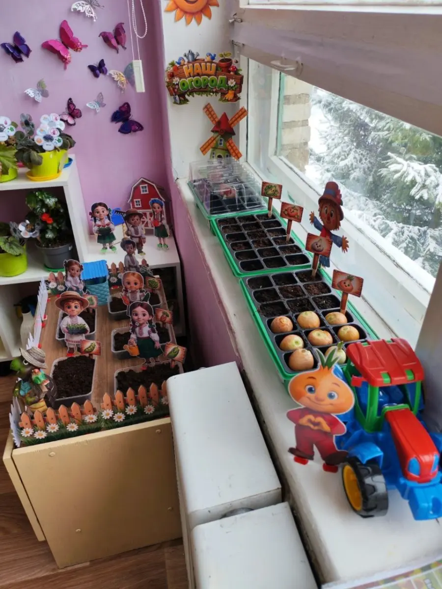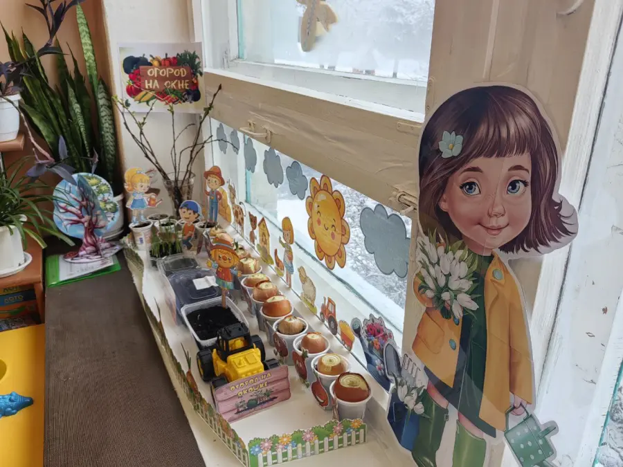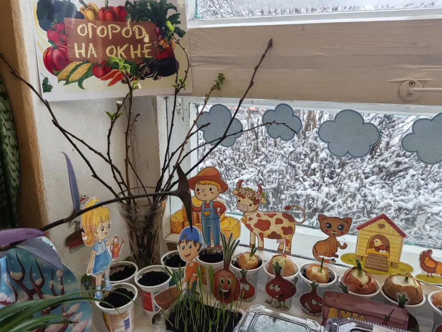 Огород на подоконнике в каждой группе - это яркий, творчески оформленный уголок, притягивающий внимание детей и побуждающий окунуться в мир природы и чудес.
